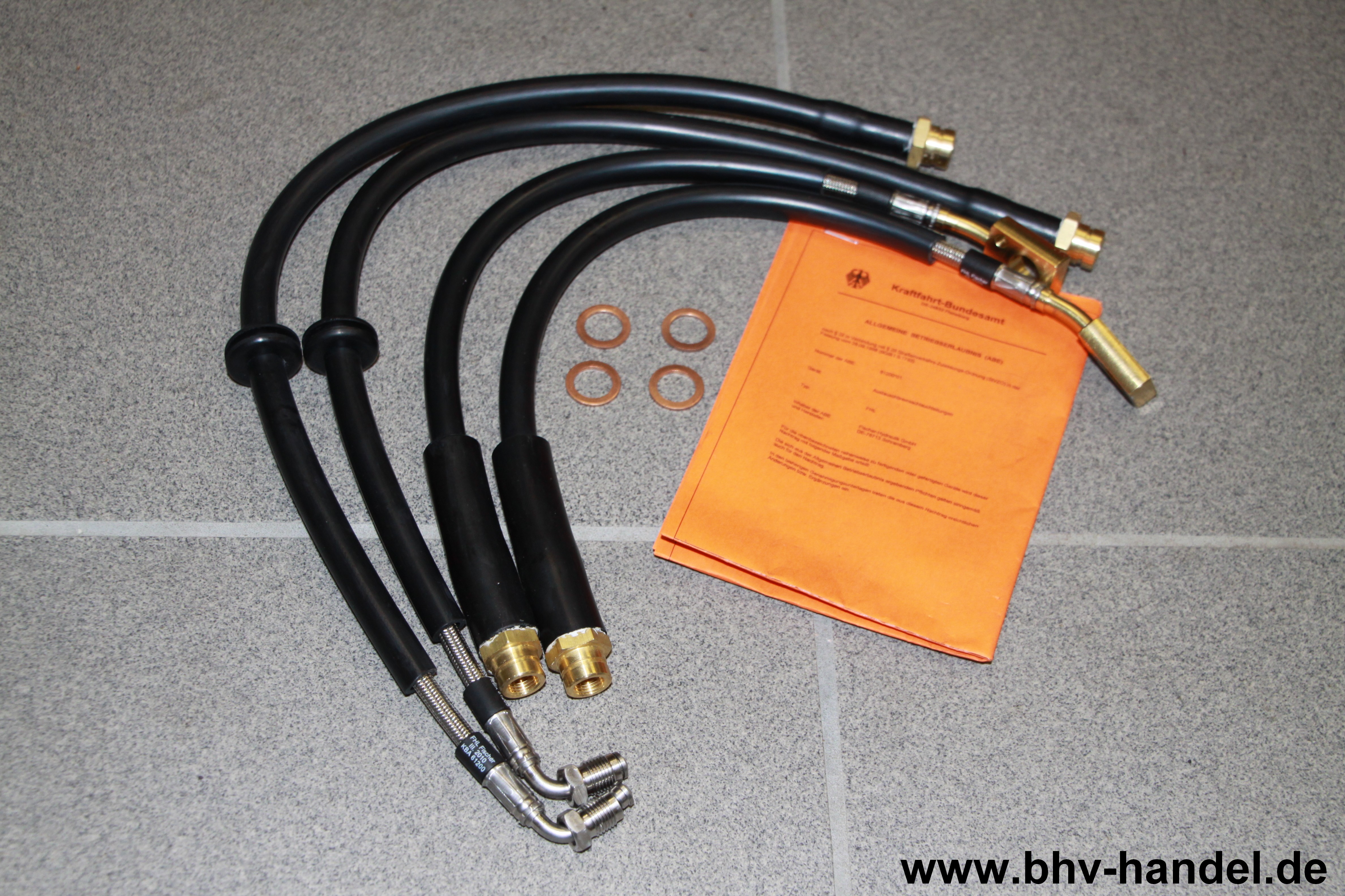 Der Satz Stahlflexbremsschläuche ist montagefertig incl. Gutachten für die Eintragung.